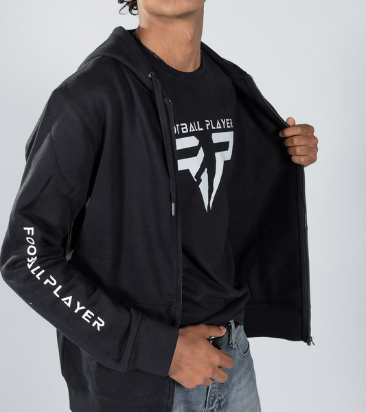 Felpa Nera Uomo con Cappuccio e Zip - Logo Football Player